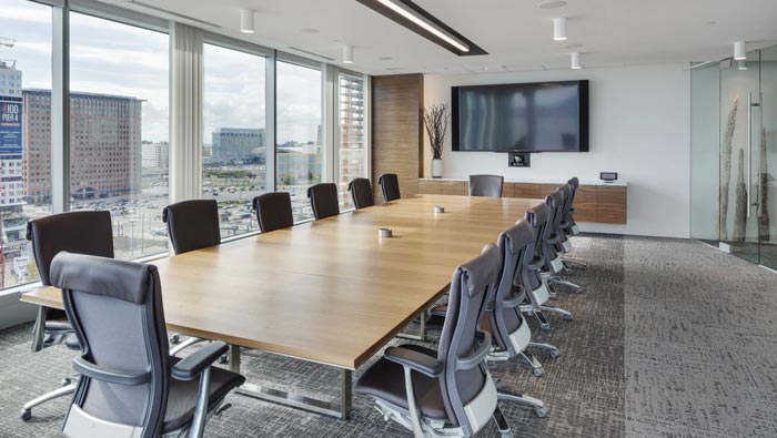 會議室的設計:通過以上的設計介紹,可以知道會議室位于接待空間的內側,且是一個獨立的空間,會議空間的設計以簡潔、明亮為主,這樣設計的目的,就是希望將光更好的加以闡述,光日復一日、從不間斷,這也是設計師希望通過設計傳達的信息,希望企業(yè)可以長盛不衰。