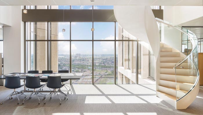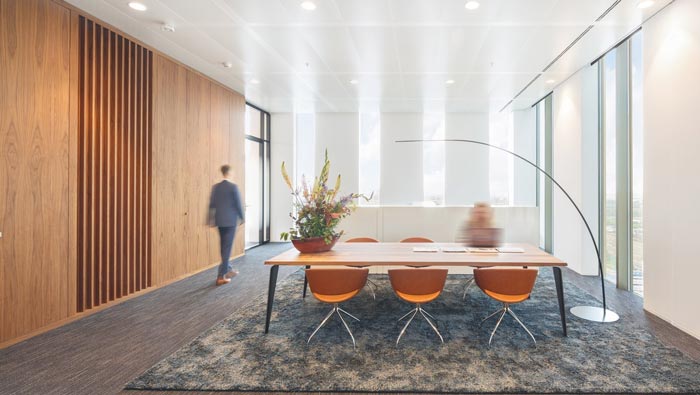 小型會(huì)議室的設(shè)計(jì):在我們的想法之中,會(huì)議室一般都是封閉式的,但是設(shè)計(jì)師在此處偏偏采用了開放式,這是因?yàn)樵O(shè)計(jì)師希望通過空間來化解人與人之間的壓力,并通過美景來沖散心中淤積的心事,在這樣的空間中,人的思路會(huì)越來越清晰。