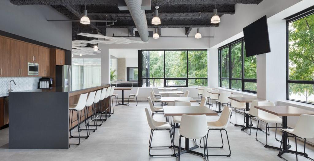 我們認(rèn)識(shí)到業(yè)務(wù)和工作的協(xié)作性質(zhì),建立了一個(gè)完整的資源庫(kù)以及各種會(huì)議和空間,包括私人和半私人的空間,以鼓勵(lì)交談和講故事?,F(xiàn)在邀請(qǐng)咖啡廳的全景景觀,但不中斷日常工作流程,其結(jié)果作為一個(gè)中心的市政廳會(huì)議,集會(huì),和多功能的用途,視需要。