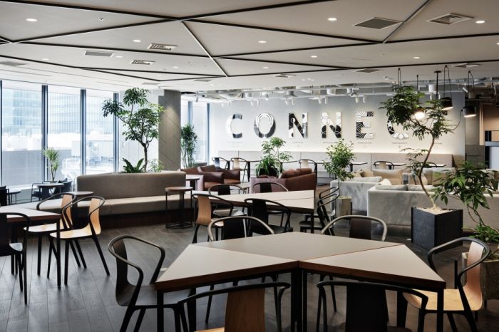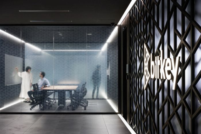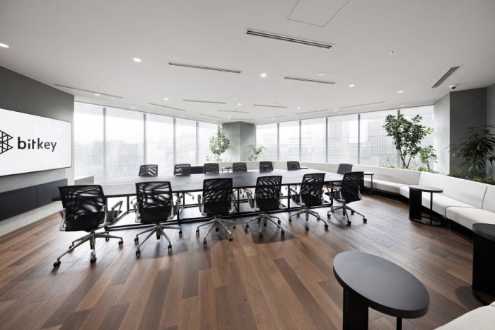 Bitkey公司總部位于東京京橋區(qū),是基于自主分布式系統(tǒng)的獨(dú)特?cái)?shù)字秘鑰技術(shù)——Bitkey平臺(tái)的服務(wù)商。設(shè)計(jì)以Bitkey的標(biāo)識(shí)為靈感,該標(biāo)識(shí)通過簡單的三角形組合象征無限的世界。這一概念在項(xiàng)目的平面設(shè)計(jì)和家具配置中都得到了呼應(yīng)。此外,通過在辦公室內(nèi)堆疊透明的標(biāo)識(shí)圖案,創(chuàng)造出具有無限圖案的結(jié)構(gòu),人們可以在其中自由行走。這種布局是Bitkey交叉工作方式的空間表達(dá),交叉的工作職責(zé)促進(jìn)了員工創(chuàng)新。該辦公室是使用Bitkey技術(shù)對整個(gè)建筑進(jìn)行數(shù)字化改造并行項(xiàng)目的起點(diǎn)。