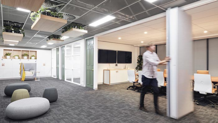 會(huì)議室的設(shè)計(jì):推拉門是此處設(shè)計(jì)的亮點(diǎn),當(dāng)門合起來之后一個(gè)封閉的會(huì)議空間展現(xiàn)在大家的面前,以此保證會(huì)議的順利開展,當(dāng)門開起來之后,內(nèi)外空間結(jié)合在一起,為會(huì)議室增加了一絲活力,在這樣的空間下交流,更有利于問題的解決。