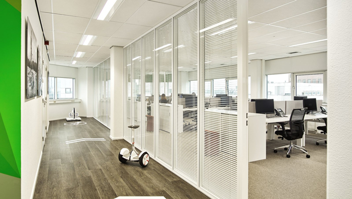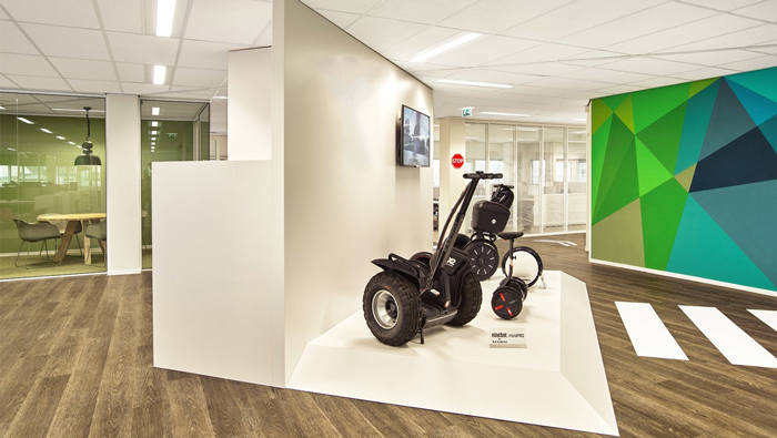 走廊的設(shè)計(jì):代步車在這里馳騁,設(shè)計(jì)師的想法就是讓員工與客戶都能親自感受,因?yàn)楫a(chǎn)品本身就是讓人用的,但往往很多企業(yè)的產(chǎn)品內(nèi)部員工都是無福消受的,設(shè)計(jì)師認(rèn)為這是不對的,因?yàn)橹挥袉T工親自感受過之后,才能提出自己的想法與看法,在使用的過程中優(yōu)化他們、改進(jìn)他們。