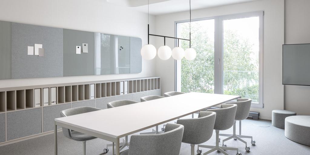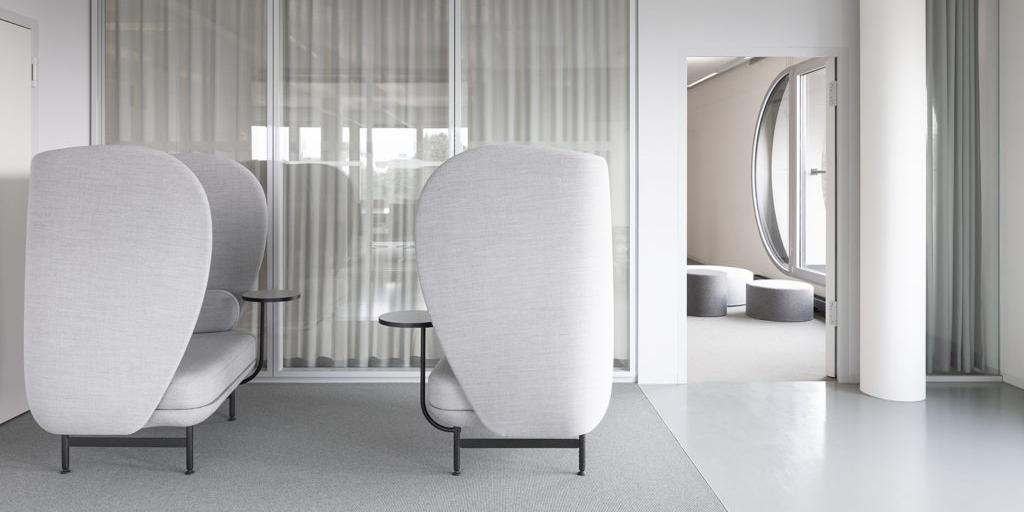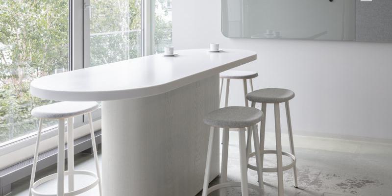 在接待處旁邊,還設(shè)立了一個等候區(qū),里面有高背沙發(fā);另外的椅子被分組,以便在大廳的另一部分提供一個更隱蔽的空間。這一部分的空間是四舍五入的技術(shù)移動,一個多功能的裝飾項目,可以用來展示一個變化范圍的鼓舞人心的技術(shù)展品。
