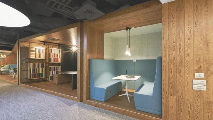 休息區(qū)域的設(shè)計(jì):設(shè)計(jì)師在設(shè)計(jì)的時(shí)候,更多強(qiáng)調(diào)的是對(duì)于自然的開發(fā),在設(shè)計(jì)師看來自然擁有無以倫比的自愈能力,故此設(shè)計(jì)師希望讓員工可以融入自然,讓自然的力量可以在每一個(gè)員工心中開花發(fā)芽,在休息的同時(shí),不斷的修復(fù)員工那勞累的心神。