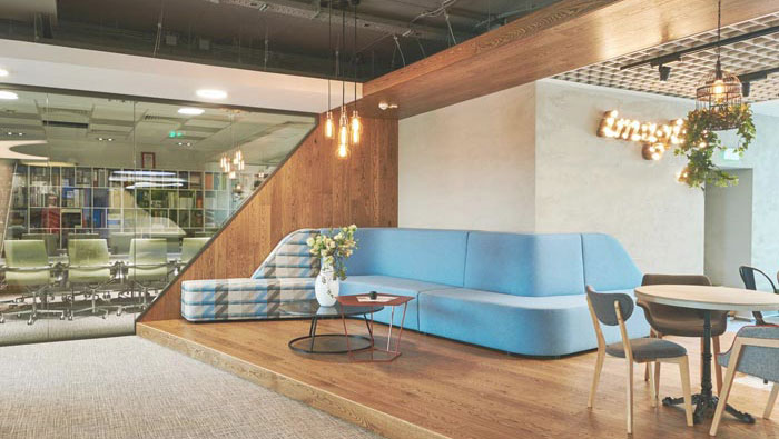 交流區(qū)域的設(shè)計(jì):設(shè)計(jì)師在設(shè)計(jì)的時(shí)候,在開放空間的基礎(chǔ)上將其隔離為一個(gè)個(gè)的小空間,設(shè)計(jì)師將其中一大部分空間設(shè)置為交流區(qū)域,在設(shè)計(jì)師看來這樣的空間相對(duì)獨(dú)立,又相對(duì)開放,設(shè)計(jì)師認(rèn)為開放又獨(dú)立的空間可以在相互之間達(dá)到互補(bǔ),對(duì)于企業(yè)的發(fā)展有積極的作用。
