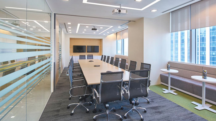 會(huì)議室的設(shè)計(jì):此處結(jié)合了會(huì)議室與交流區(qū)域,這也是設(shè)計(jì)師偶然的突發(fā)奇想,窗邊的交流區(qū)域,在會(huì)議開(kāi)展的時(shí)候可以容納更多的會(huì)議人員,在平時(shí)也可以做為與客戶之間的交流區(qū)域,設(shè)計(jì)師的設(shè)計(jì)理念就是處處都是實(shí)用的,處處都是一種生活的態(tài)度。