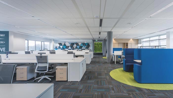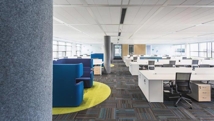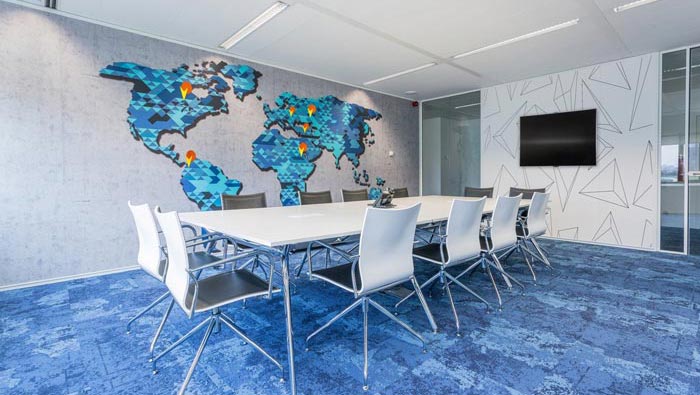 大辦公室的設計:設計師在設計的時候,將其安置在一個大的開放空間之中,設計師采用取中的設計原則,在設計師看來取中可以將思緒全部集中在會議區(qū)域,同時地毯設計師采用了類似海洋的顏色,以此寓意企業(yè)順風順水,同時這樣的設計將此處的向心力更加集中于中間部位,不會因為分散導致空間顯得空曠。