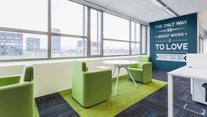 交流區(qū)域的設計:交流區(qū)域在設計師的想法之中,最理想的表達方式就是在一個朝陽的、舒適的空間之中,故此設計師在設計的時候,為其留下了一個十分適合的空間,此處的設計讓企業(yè)與客戶、企業(yè)與員工之間變得更像是朋友之間的交流,以此減緩相互之間的緊張,讓大家如朋友一般暢所欲言。