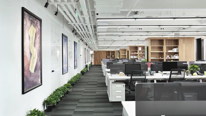 辦公區(qū)域的設(shè)計(jì):設(shè)計(jì)師在設(shè)計(jì)的時(shí)候,對辦公空間采用開放式的設(shè)計(jì)手法,在設(shè)計(jì)師看來開放式的設(shè)計(jì)是現(xiàn)在的一個(gè)主流趨勢,同時(shí)設(shè)計(jì)師將每一個(gè)辦公區(qū)域都按照部門進(jìn)行劃分,在每一個(gè)部門之間都放置儲藏柜,儲藏柜不僅可以起到容納的作用,同時(shí)也將兩個(gè)部門進(jìn)行分離,這樣既可以保證空間的開放性又可以保證空間的私密性。