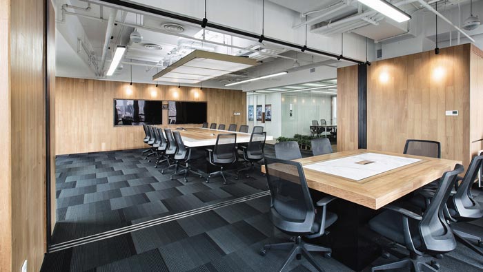 會議室的設(shè)計(jì):設(shè)計(jì)師在設(shè)計(jì)的時(shí)候,打算設(shè)計(jì)一個(gè)小會議室與小會議室結(jié)合的會議空間,大會議室安置在空間的內(nèi)部,小會議室安置在空間的外側(cè),兩者之間呈一條直線分布,這樣布局的好處就是為空間預(yù)留了足夠的活動(dòng)空間,活動(dòng)空間與動(dòng)線相互結(jié)合在一起,既保證了空間的通暢又保證了空間的正常運(yùn)行。
