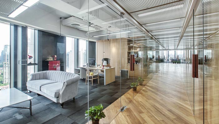 董事長辦公室的設(shè)計(jì):設(shè)計(jì)師在設(shè)計(jì)的時(shí)候,與董事長進(jìn)行了深入的交流,通過交流了解到董事長喜歡安靜與寧靜,這也就是設(shè)計(jì)師將此處安置在空間深處的原因,同時(shí)此處的視野也極好,讓董事長在辦公之余可以俯視與欣賞到整個(gè)外部美景,以此在不知不覺中提升董事長本人的視野。