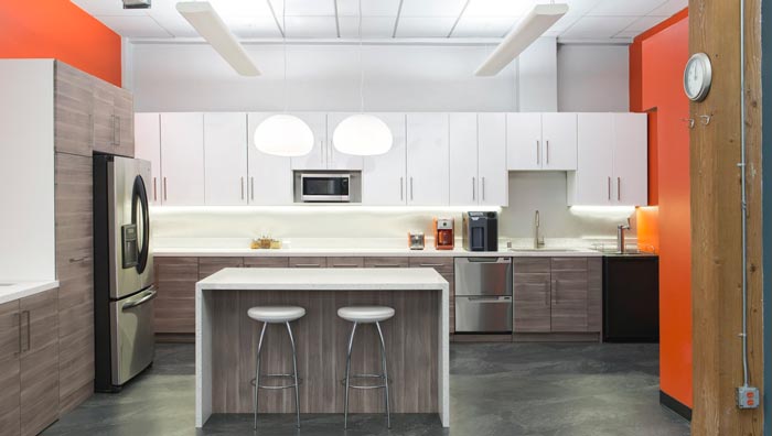 茶水間的設(shè)計(jì):此處設(shè)計(jì)師以廚房為原型做為設(shè)計(jì)參考,目的就是將空間打造成一個(gè)集辦公與家庭相結(jié)合的空間,讓員工在辦公的同時(shí)無時(shí)無刻都感受到家的溫馨,這樣對(duì)于企業(yè)的發(fā)展有很好的促進(jìn)作用,設(shè)計(jì)師希望讓關(guān)心、溫暖成功企業(yè)的代名詞,讓關(guān)心、溫暖成為企業(yè)發(fā)展產(chǎn)品的動(dòng)力與原則。