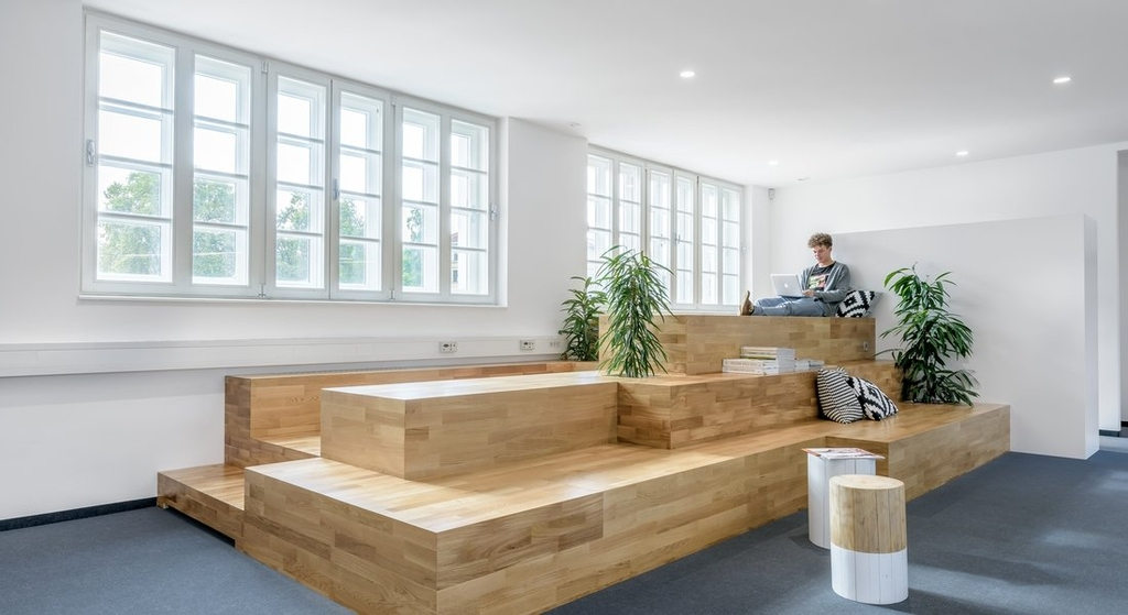降噪,與大的木制的多層立方體,作為臨時會議或頭腦風(fēng)暴的平臺,將成為關(guān)鍵,以避免以前充滿壓力的環(huán)境的陷阱。進一步推動時尚,舒適,符合人體工程學(xué)的家具,以及工作空間的多樣性。