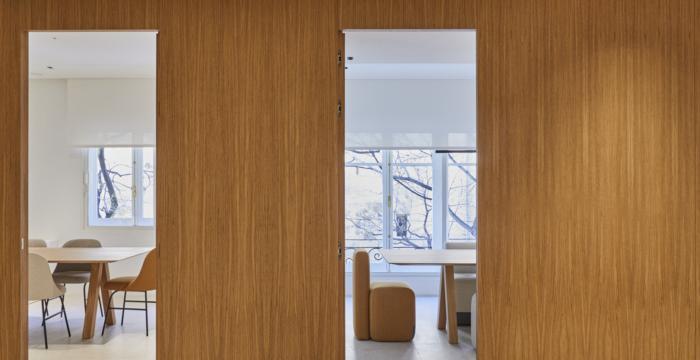 協(xié)作工作間被設(shè)想為中立的空間,為那些決定在辦公室工作的客戶提供各種活動(dòng),如視頻會(huì)議、簡(jiǎn)短會(huì)議,甚至是合作活動(dòng)。各成員非但沒(méi)有制造阻礙意見(jiàn)交流的障礙,反而可以共用工作站,在需要更大隱私的時(shí)候可以選擇利用其他領(lǐng)域。