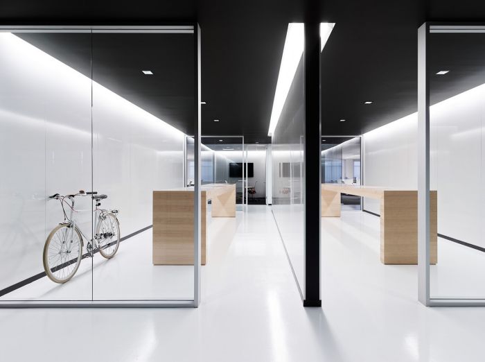 這是一個擁有800方的辦公室,辦公空間簡潔大氣。設計師打造了一個開放協(xié)作的工作環(huán)境包括工作場所、會議區(qū)、冥想空間、休閑區(qū)和私人電話亭。門口的存儲區(qū)可以放置自行車,鼓勵員工騎自行車上下班。