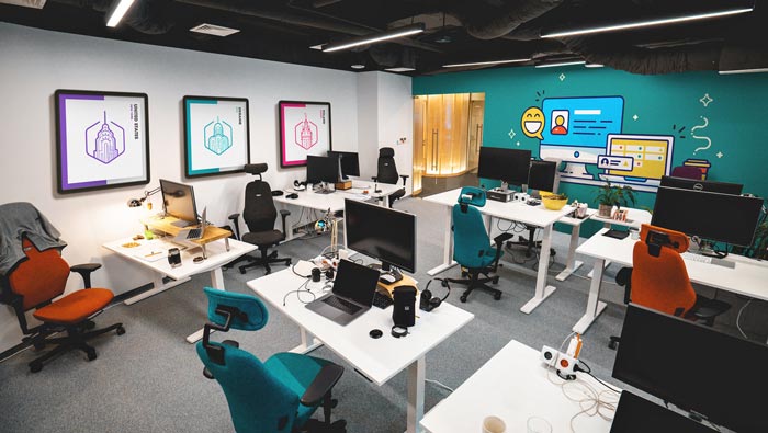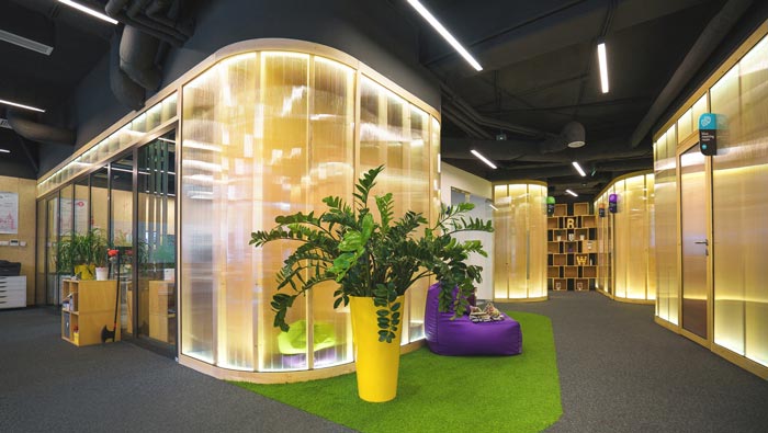 辦公場(chǎng)所的設(shè)計(jì):此處主要為后期測(cè)試與前端工作人員辦公的場(chǎng)所,在這里開放與私人相互結(jié)合在一起,開放的空間讓員工如一家人一樣,私人的設(shè)計(jì)讓員工擁有自己獨(dú)立的辦公空間,這樣做的目的就是給每一個(gè)員工留下獨(dú)立思考的空間,消除空間的弊端,讓辦公更加有趣。