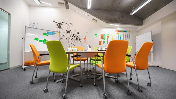 會(huì)議室的設(shè)計(jì):會(huì)議桌被設(shè)計(jì)師安置在空間的中心,這樣做的目的就是為了突出空間的重點(diǎn),四周也被設(shè)計(jì)師很好的加以利用,白色黑板、標(biāo)簽墻壁的相互搭配,讓會(huì)議變得有趣起來,讓一切難題都被記錄下來,這樣可以提升企業(yè)的辦事效率,讓遺忘在此次無處遁形。