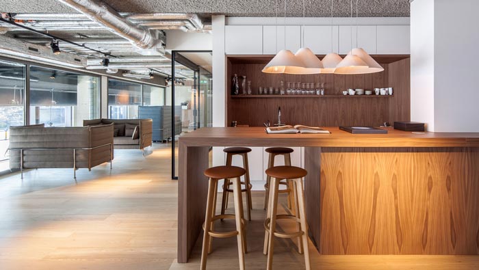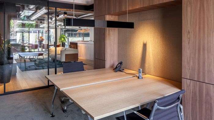 通話空間的設(shè)計:由于企業(yè)的工作需要,打電話是工作的日常所需,故此設(shè)計師也將其列入設(shè)計的重點,隔音門關(guān)起來之后,為員工打電話營造了一個安靜的空間,在這里與外界隔絕,適合員工在這里打電話,同時此處在閑暇之時,也可以滿足企業(yè)各種不同的需要。