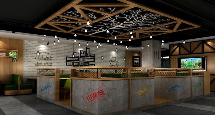 本次為川漁館裝修設(shè)計方案,在川漁館設(shè)計中,“川”字被賦予了獨特的屬性,之所以這樣設(shè)計是希望可以直接了當(dāng)?shù)氐?,傳遞出品牌的鮮明特征,在川漁館室內(nèi)設(shè)計中,設(shè)計師以大氣、簡約、現(xiàn)代為設(shè)計主題,目的就是希望為客戶營造一個優(yōu)質(zhì)的川菜就餐環(huán)境。