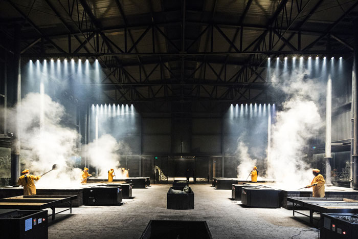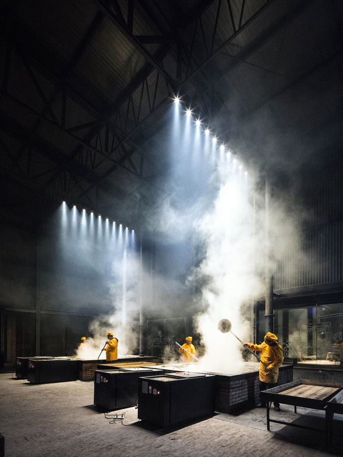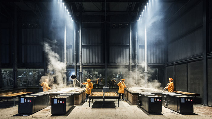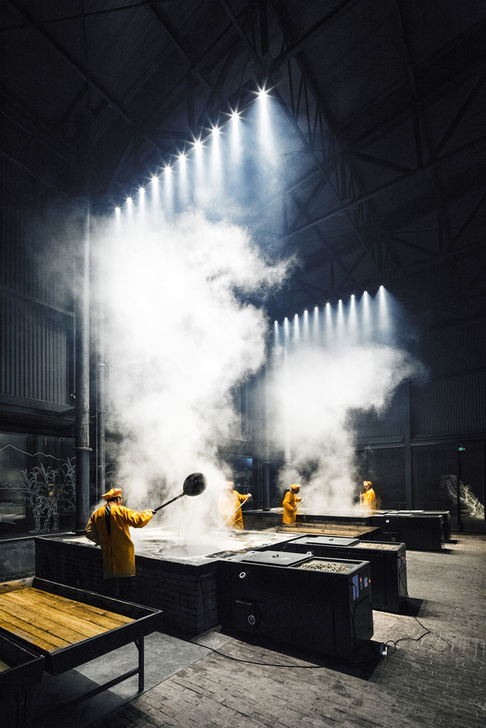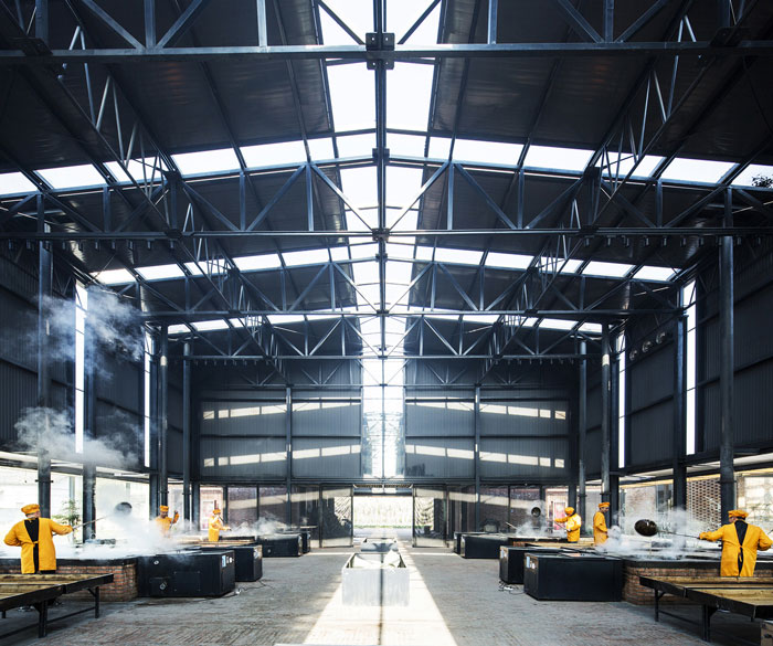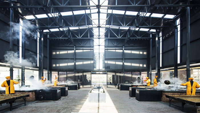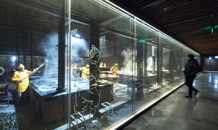 紅糖廠房車(chē)間細(xì)節(jié)裝修設(shè)計(jì):這里強(qiáng)調(diào)的是對(duì)煙霧的處理,看似垂直向上的煙霧,實(shí)則也是設(shè)計(jì)師經(jīng)過(guò)多次研究的結(jié)果,設(shè)計(jì)師考慮到煙霧對(duì)工作人員的影響,故此重點(diǎn)解決。
