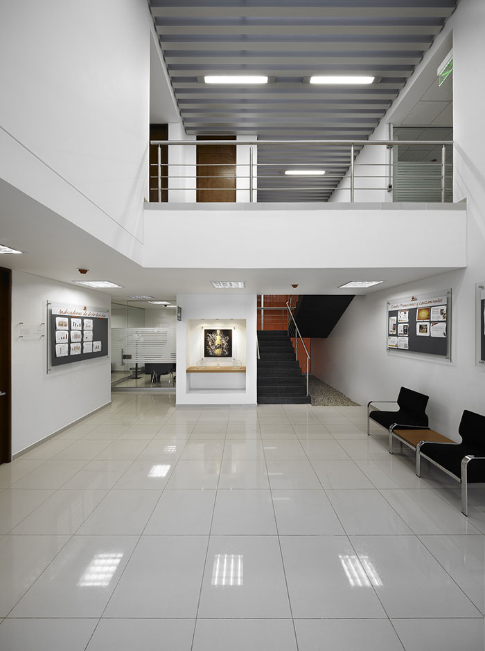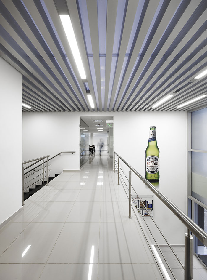 工廠廠房辦公區(qū)二樓裝修設(shè)計(jì):二樓過道好似云梯,潔白的空間給人一種別樣的感覺,讓空間不在單調(diào),大大的啤酒瓶鑲嵌在空間的白墻上,既做為點(diǎn)綴,同時(shí)也作為企業(yè)的品牌宣傳。