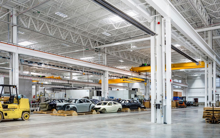 汽車工廠車間裝修設(shè)計(jì):這里是存放汽車供應(yīng)商,提供汽車原型的地方,汽車原型在這里等待被上裝,整個(gè)空間需要保證絕對的暢通,這也是設(shè)計(jì)師設(shè)計(jì)的重心所在。