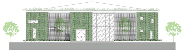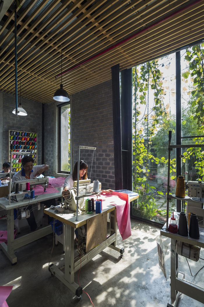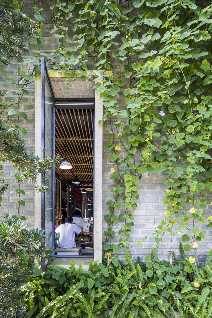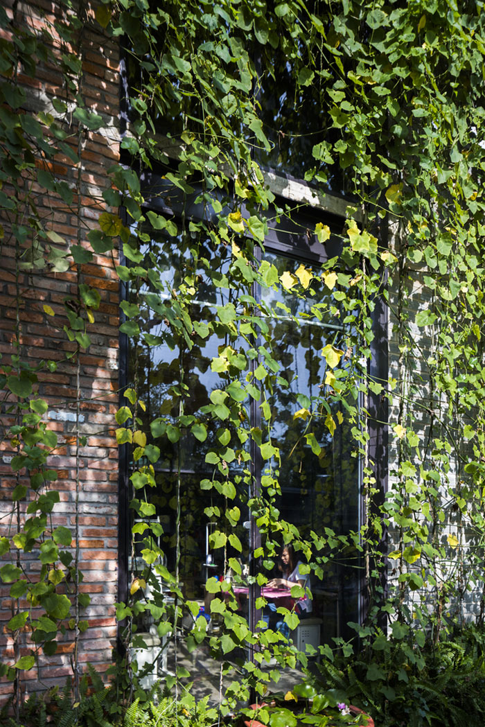 服裝廠房外墻裝修設計:外墻的綠植充滿了自然的氣息,此自然是天生地長的自然,其中只有人為修剪、整理的成分,之所以這樣,是設計師希望一切都可以保留最初的模樣。