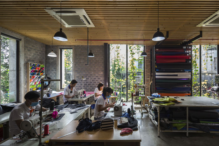 服裝廠房墻體裝修設計:通透是此類建筑的初心,通保證室內(nèi)與室外空氣的流通,透保證陽光透過這里進入室內(nèi),這樣相互之間的互動,產(chǎn)生了一個通風、自然、舒適的空間。