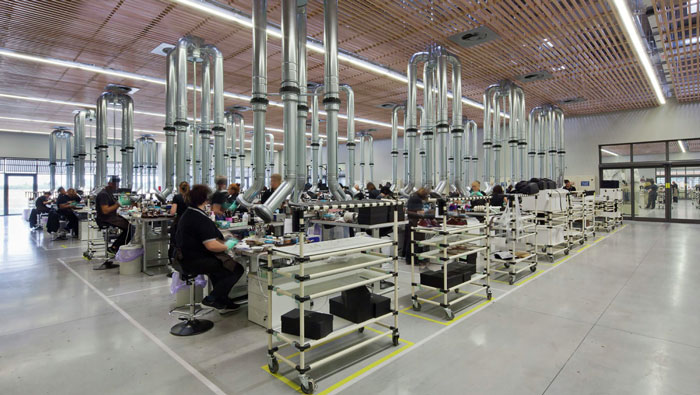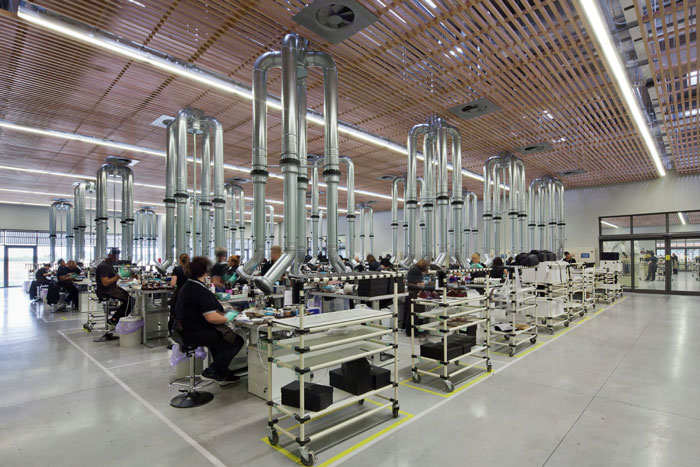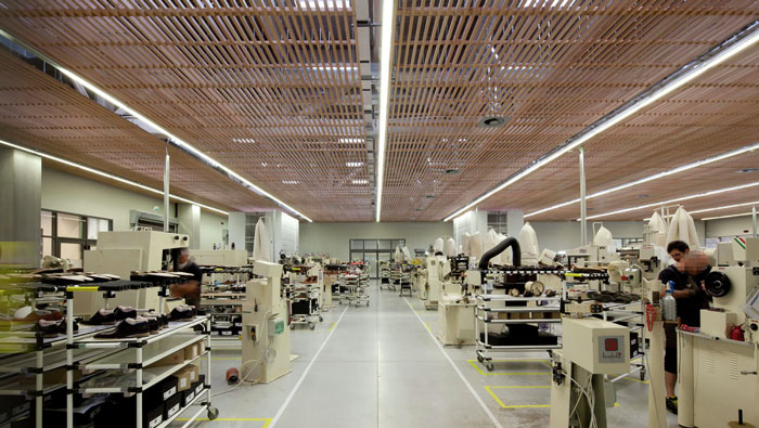工廠廠房車間裝修設(shè)計:這里是鞋子的重要組裝區(qū),這里主要由人工完成,高端的鞋子在這里逐漸成型,這里注重的是舒適度,在定制化回歸的今天,高端的鞋子更受人追捧。
