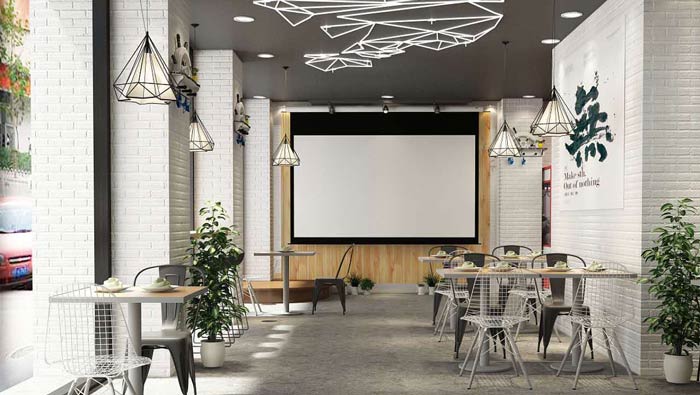 茶飲茶餐廳投影機(jī)設(shè)計(jì):這里也同樣接受小范圍的聚會(huì)與party,年輕人在這里舉行各自范圍內(nèi)的小型聚會(huì),這里也是一個(gè)不錯(cuò)的場(chǎng)地,在這愜意、舒適的茶餐廳,讓朋友們開心、舒心。