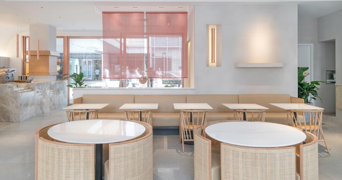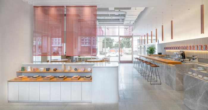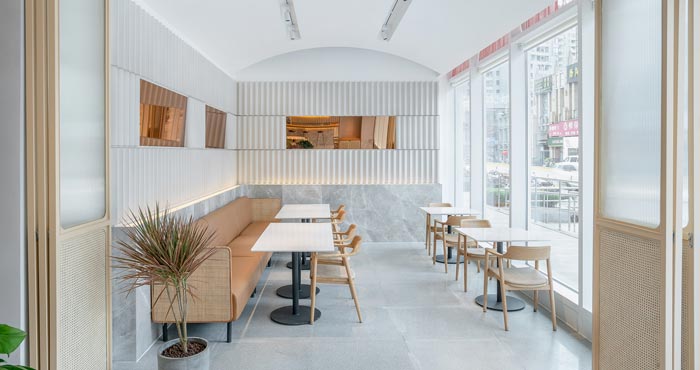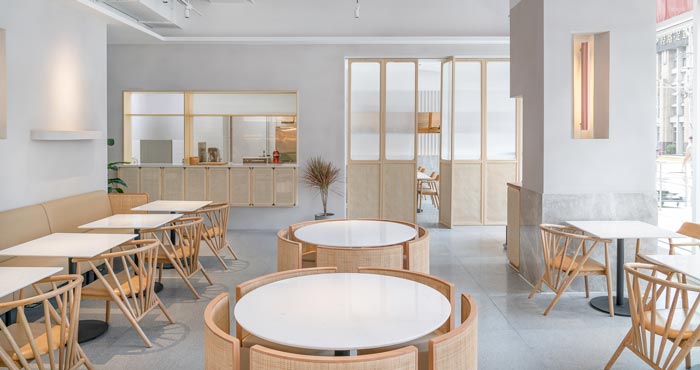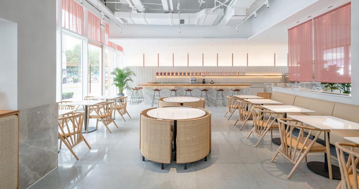 本次為茶餐廳設(shè)計(jì)項(xiàng)目,茶餐廳位于一個(gè)商業(yè)綜合體的室外一層,設(shè)計(jì)師希望創(chuàng)建一個(gè)舒緩的流線,引導(dǎo)人進(jìn)入到一個(gè)愜意的氛圍空間。