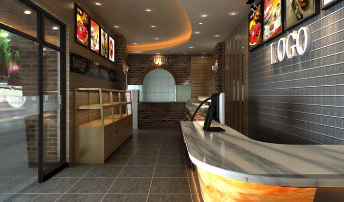 在蛋糕店裝修設(shè)計的時候,設(shè)計師主要采用咖啡色作為主色調(diào),咖啡色,屬于中性暖色色調(diào),它優(yōu)雅、樸素、莊重而不失雅致,是一種比較含蓄的顏色,加上白色的logo,更加的突出品牌的展現(xiàn)和效果。