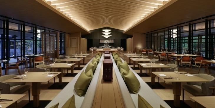 Roku Kyoto度假酒店。當(dāng)?shù)厣瞥龉そ?,日本比較有聲譽(yù)的寺廟大多集聚于此,匠人精神和宗教元素賦予了酒店獨(dú)特的魅力。林立的纖細(xì)柱網(wǎng)結(jié)構(gòu),其設(shè)計(jì)靈感來(lái)自于風(fēng)中搖曳的竹子,生動(dòng)場(chǎng)景的建立,使住客與自然產(chǎn)生親密的聯(lián)系。