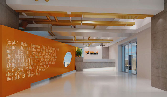 形象墻的設(shè)計,設(shè)計師采用了橘黃色,這樣會更加醒目,讓形象墻的功能作用可以得到最大化開發(fā)和利用。