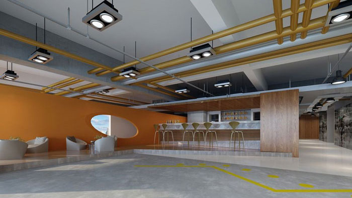 在開放區(qū)域的設(shè)計中,設(shè)計師根據(jù)每個功能的不同進行細分、優(yōu)化,功能區(qū)域的不同,設(shè)計師用不同的色彩進行分類,最后讓色彩歸于平淡。
