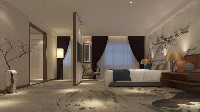 套房的設(shè)計:在這里中式裝飾更加明顯,也漸漸多了起來,就是希望讓人遠(yuǎn)離外面的世界,雖然我們無法逃離現(xiàn)在的生活,但是設(shè)計師希望讓我們得到暫時的脫離,目的就是希望在這里讓客戶進(jìn)行的思考,讓心情得到一次釋放,空間的跨越讓我們得到的是對人生的思考。