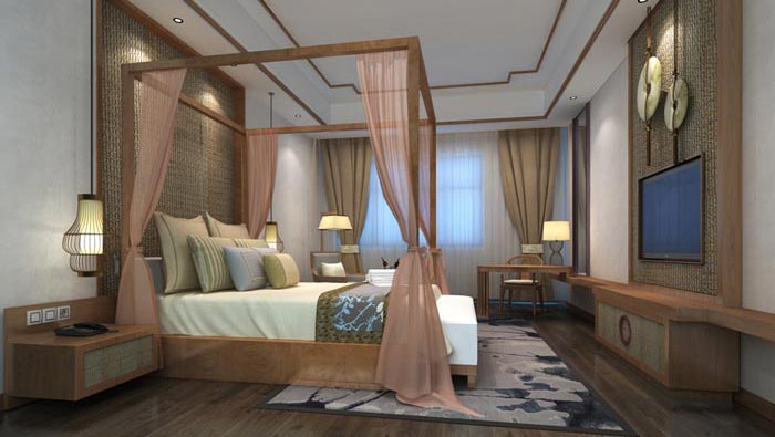 帳幔客房的設(shè)計(jì):此客房最大的亮點(diǎn)就是帳幔,茶香古色的大床房與幾個(gè)別具特色中國元素配飾,在聚光燈的照耀下蕩漾著一種如蘭的靜雅,一種如蓮的婉約,更帶著一種濃郁的生活氣息,溫暖而藝術(shù)的家居環(huán)境讓人陶醉。