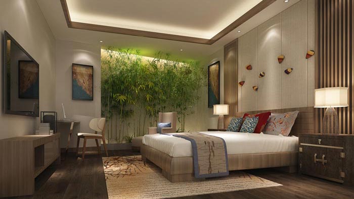 自然客房的設(shè)計(jì):此空間的亮點(diǎn)就是竹子,竹子在古代的文人墨客之中聲名遠(yuǎn)揚(yáng),因?yàn)橹裣笳鳉夤?jié),寧折不彎,挺直脊梁,同時(shí)也彰顯君子的氣節(jié),雖不粗壯,但卻正直,堅(jiān)韌挺拔,不懼嚴(yán)寒酷暑,萬古長青,這也是設(shè)計(jì)師認(rèn)為的君子之道,設(shè)計(jì)師希望大家的生活一天比一天好,意味竹子開花節(jié)節(jié)高。