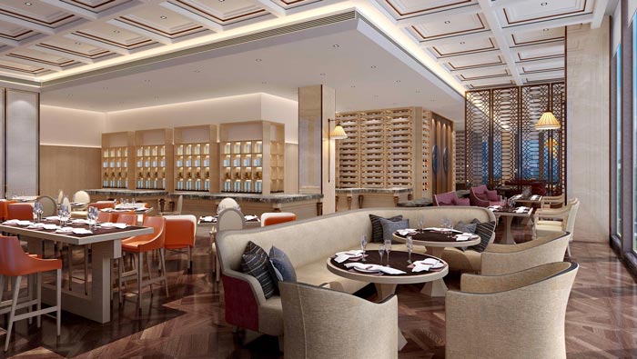 餐廳的設(shè)計(jì):足不出戶是酒店給人的第一感受,在這里就是希望形成一個(gè)良好的內(nèi)部循環(huán),讓客戶在內(nèi)部體驗(yàn)到所有需要的服務(wù),在這里設(shè)計(jì)師以家對(duì)餐廳進(jìn)行定義,在設(shè)計(jì)師看來(lái)現(xiàn)在社會(huì)最缺的就是一種氛圍,一種家的氛圍,設(shè)計(jì)師希望客戶在這里可以體會(huì)到家的感覺(jué)。