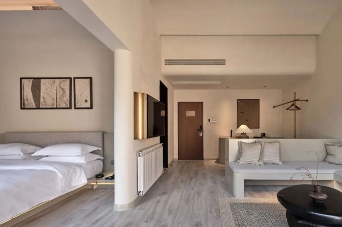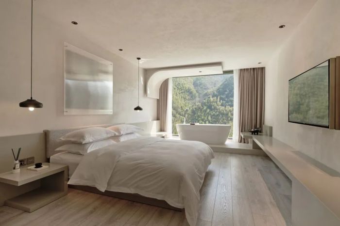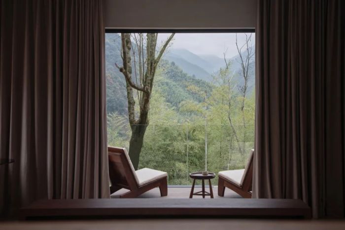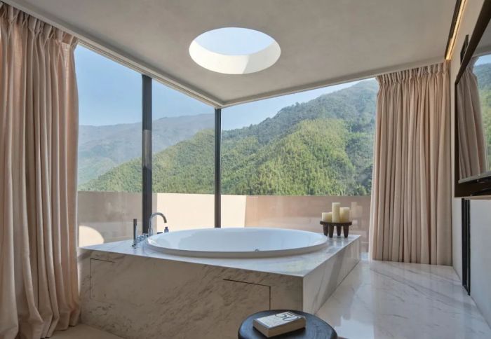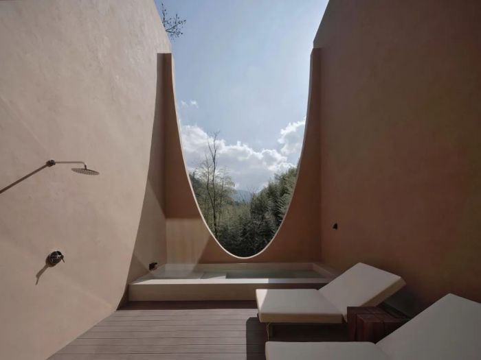 善侒酒店位于竹海山林深處,建筑設(shè)計融入自然元素,采用當?shù)夭牧?,展現(xiàn)出與自然和諧共存的美感。酒店擁有17間客房,各自擁有獨特的風(fēng)景和設(shè)計特色,比如“赤樓”的米色墻面和流暢線條、“頤樓”的私享庭院以及“需樓”的巨大U型泡池。