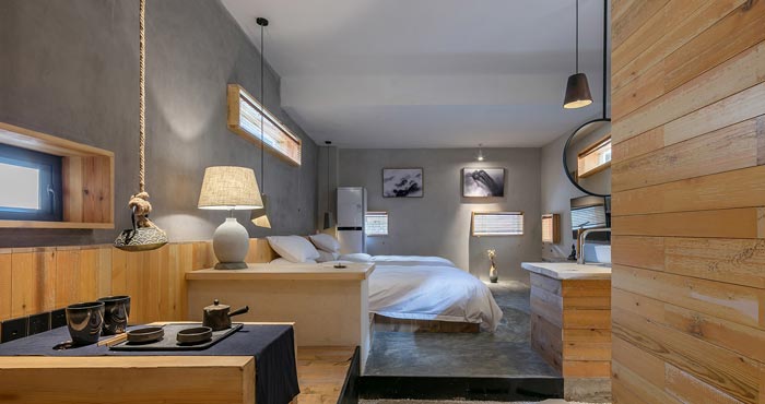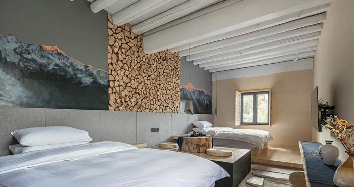 本案簡約民宿設計項目介紹結(jié)束,民宿設計加入了東方的禪意元素,然后以古城香格里拉的藏式風格自然過渡,呈現(xiàn)在客戶眼前的是,散發(fā)著自然之美的簡約民宿。