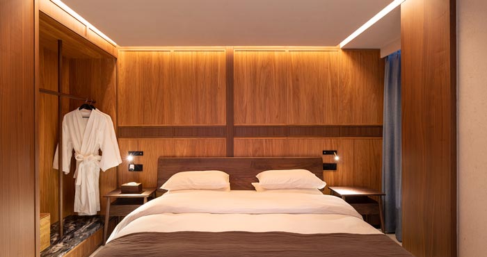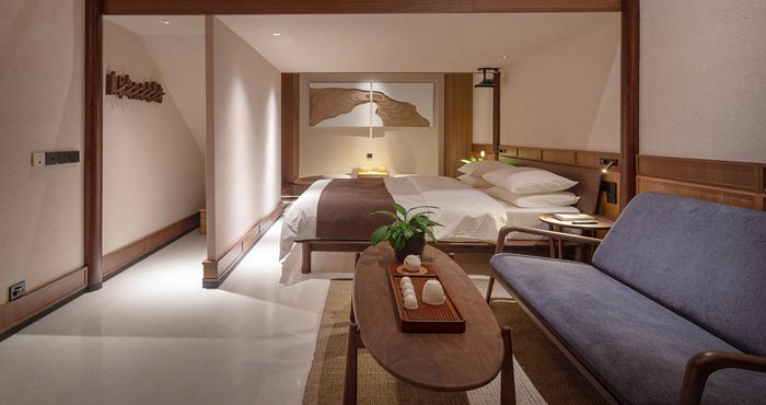 本次民宅民宿設(shè)計(jì)項(xiàng)目介紹結(jié)束,在設(shè)計(jì)中保留原建筑的柱網(wǎng)空間,同時(shí)以院落為中心,將空間劃分為四個(gè)客房區(qū)域,整體呈現(xiàn)中軸對稱的格局。
