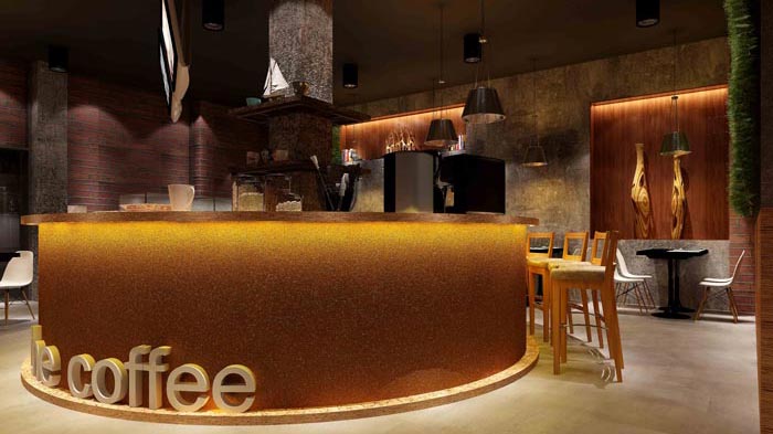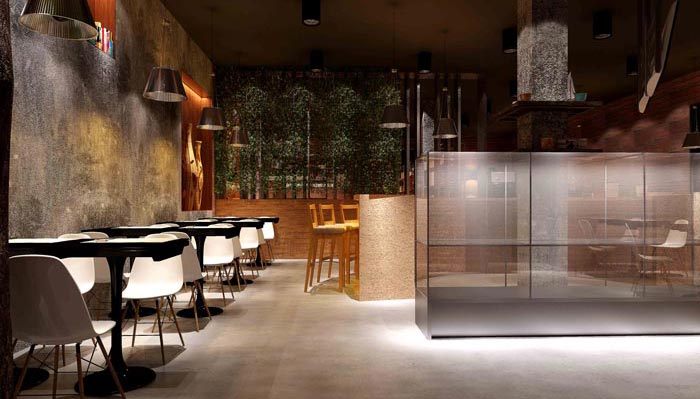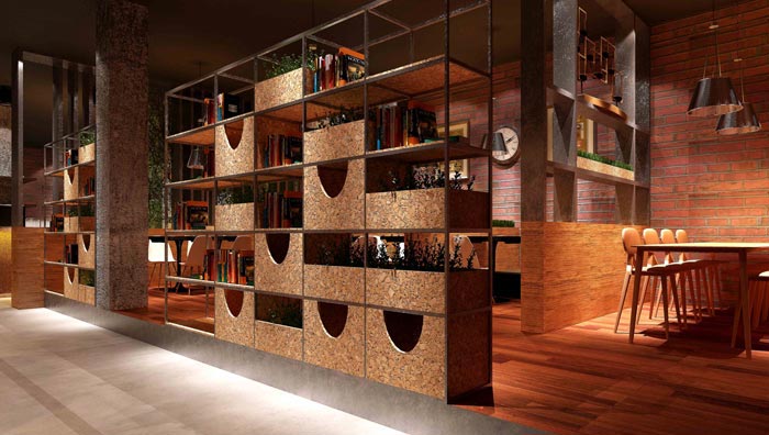 設計師在咖啡廳設計的時候,保持主色調、主體裝飾材料的運用、鋪陳出工業(yè)風。