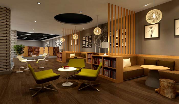 咖啡廳設(shè)計(jì):學(xué)習(xí)型咖啡廳圖書館裝修設(shè)計(jì)案例
