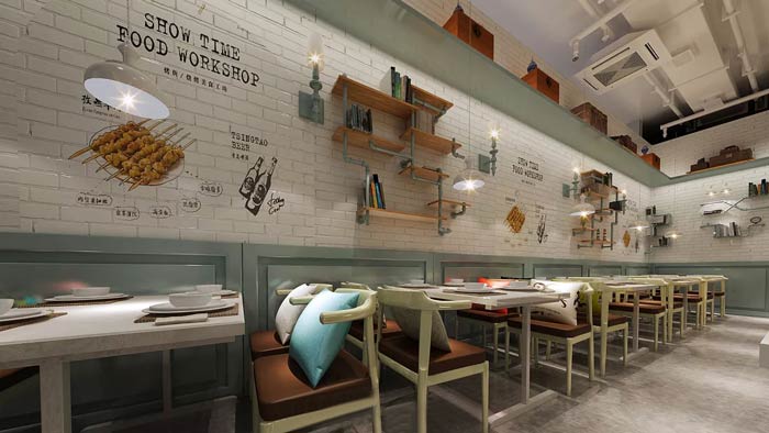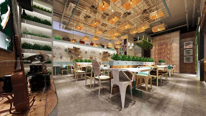 烤魚燒烤店裝飾設(shè)計:綠植為空間帶來綠色與自然,音樂為空間帶來旋律與活力,柔和的燈光為空間營造了浪漫的氛圍,整個相互交互在一切,營造一個優(yōu)質(zhì)的就餐環(huán)境。