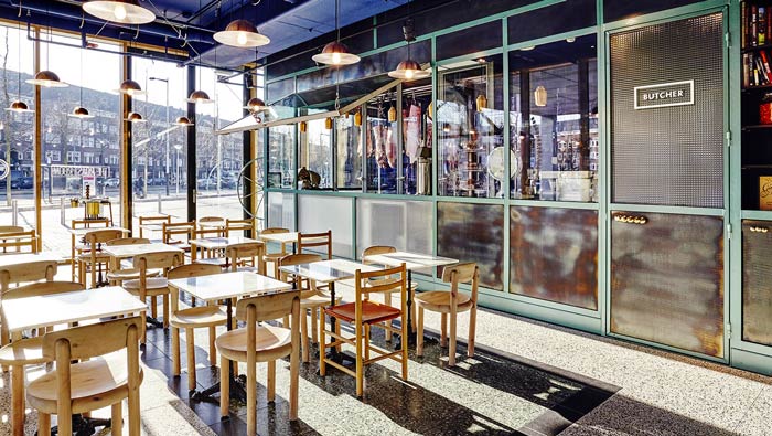 本次為烤肉店裝修設計方案,設計師在設計中,對烤肉店的每一處細節(jié)、每一個設計都追求完美,希望創(chuàng)造一個開放、耐久而又能夠經受住時間考驗的餐廳空間,故此設計師從家具、吧臺、肉品販賣臺、到獨特的照明燈具、瓷磚和銅制的門把手,皆由設計師親手制定采購。