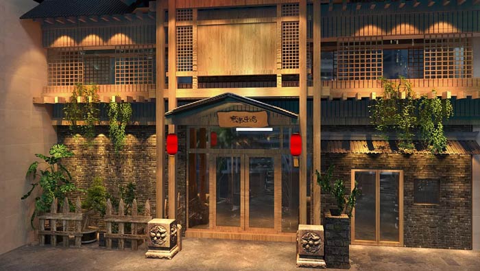 特色燒烤店外立面設(shè)計(jì):業(yè)主之所以選擇在這里開設(shè)燒烤店,就是被建筑本身的風(fēng)貌所吸引,故此設(shè)計(jì)師對建筑本身進(jìn)行了修繕與改進(jìn),目的就是為了尋回真正的古式建筑。