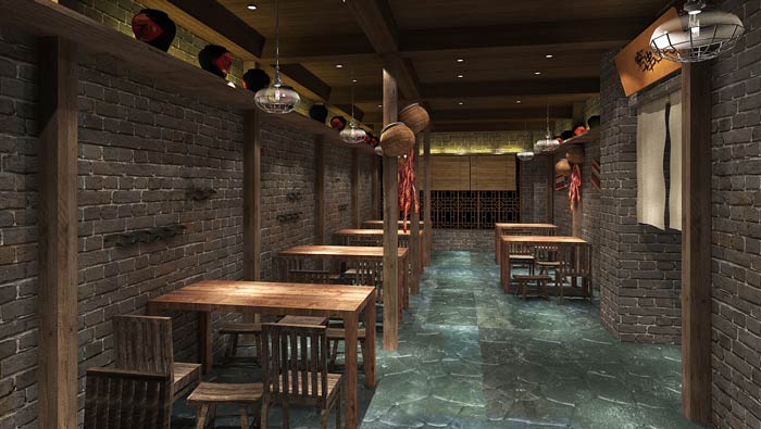 特色燒烤店餐區(qū)設(shè)計(jì):餐桌的擺放按照一定的比例進(jìn)行排列,在排列的過程中,設(shè)計(jì)師也預(yù)留了足夠的活動空間,活動空間做為空間的過道,內(nèi)部裝飾多以懷舊為主。