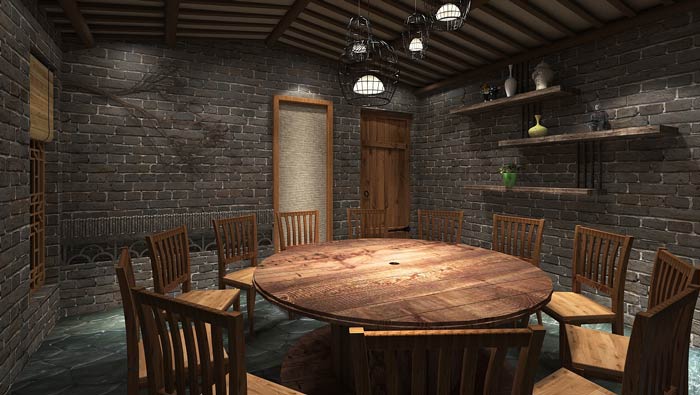 特色燒烤店餐區(qū)設(shè)計(jì):這里給人的第一感覺就是安逸,這里所說的安逸是心靈的安逸,在這里沒有了時(shí)間的概念,設(shè)計(jì)師希望讓客戶在這里體驗(yàn)日出而作、日落而息的美好生活。