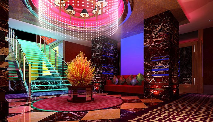 強調視覺中心等燈光具有裝飾KTV建筑室內空間的作用,創(chuàng)造環(huán)境空間的形與色,使之融為一體,借助各種光效應而產生美的韻律!